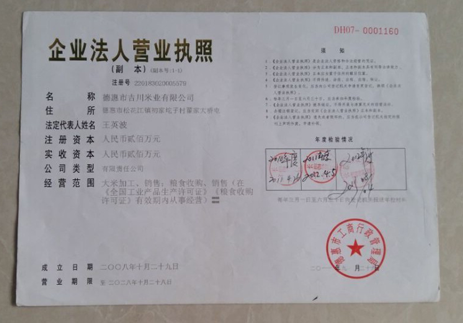 德惠市吉川米業(yè)有限公司 備案號: